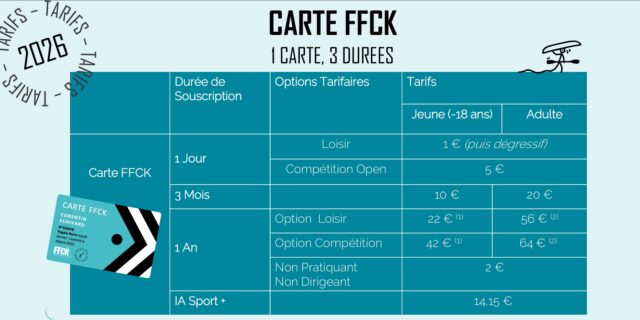 Assurance complémentaire (facultative) : 14,15 € (déjà licencié) ou 28,30 € (première adhésion)